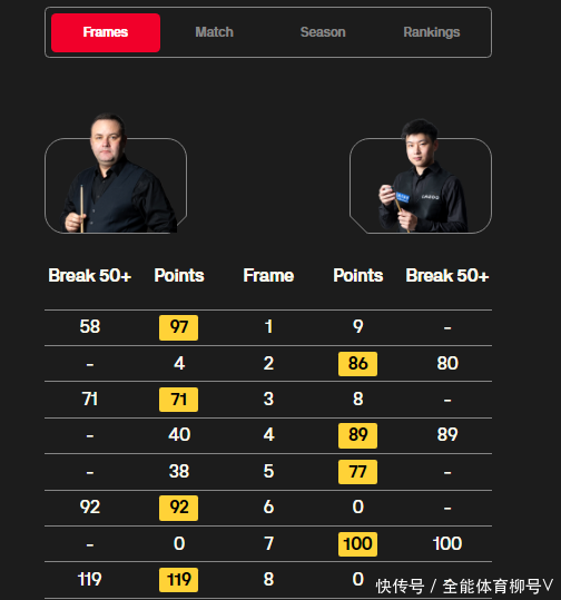 此役,7月份在上海巨匠赛强势夺冠的威尔逊气象全无,整场比赛只打出两杆50+(52分、55分),而他的敌手希尔则是气象荒谬霸气,在比赛中轰出一杆破百(124分)和三杆50+(60分、55分、56分)。