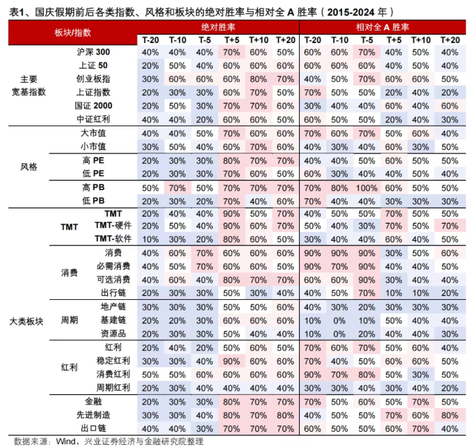 而在日期效应方面,兴业证券暗意,参考历史训戒,国庆节后自己亦然市集风险偏好抬升的传统躁动窗口。节前,出于严慎状貌,部分投资者聘请“落袋为安”,因此市集会座胜率偏低。