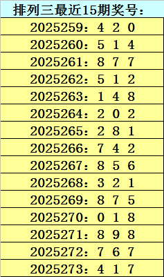 一、体彩摆设三第2025273期奖号为417,该号码历史上直选出现了8次,组选出现了57次。