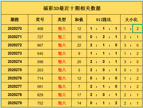 开奖归来:福彩3D上期奖号为752,其中奖号012路比为0 : 1 : 2,大小比为2 : 1,和值为14。