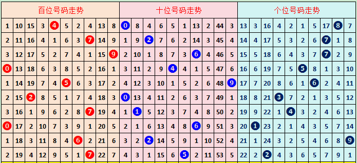 和值分析:上期开出和值14,最近十期和值平均值为13.4,上期和值比平均值飞腾,最近十期和值散播在5-22之间。本期看好和值呈飞腾趋势,保举和值19。